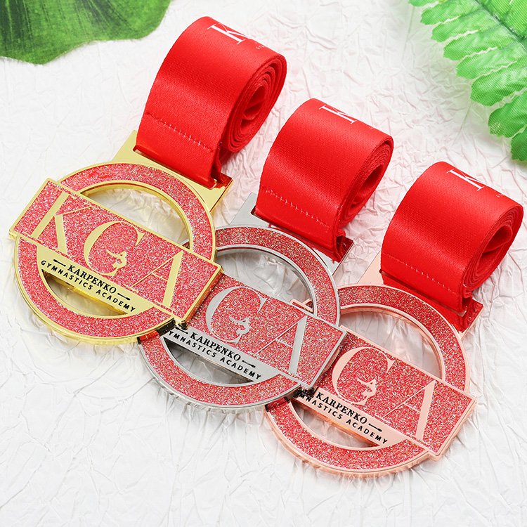Gymnastics medal 2.75” Metal Gold Silver Bronze Glitter Enamel Best Custom Dance Medals