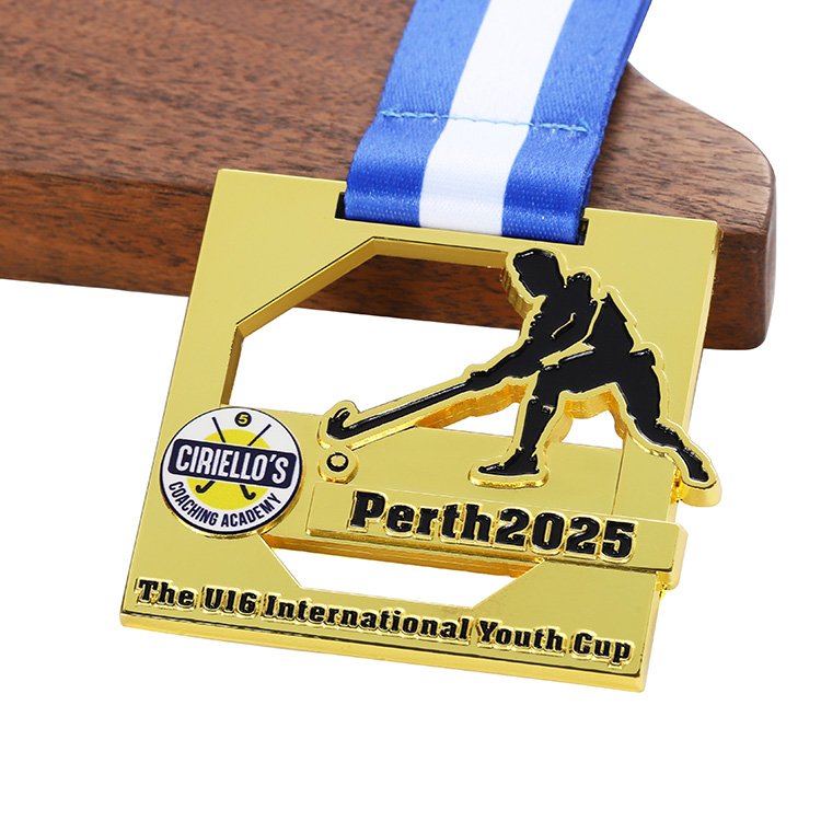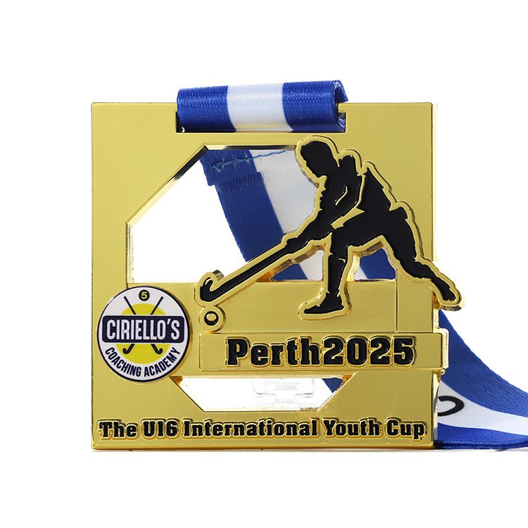 Hockey medal 3” Metal Gold Plated Soft Enamel Best Custom Sports Medals with lanyard